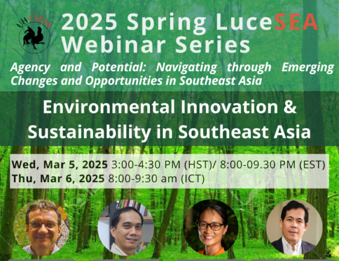 The Center for Southeast Asian Studies (CSEAS) at UH Mānoa is delighted to invite you to the upcoming session in the LuceSEA Spring 2025 Webinar Series, exploring critical topics related to elections and governance in Southeast Asia.