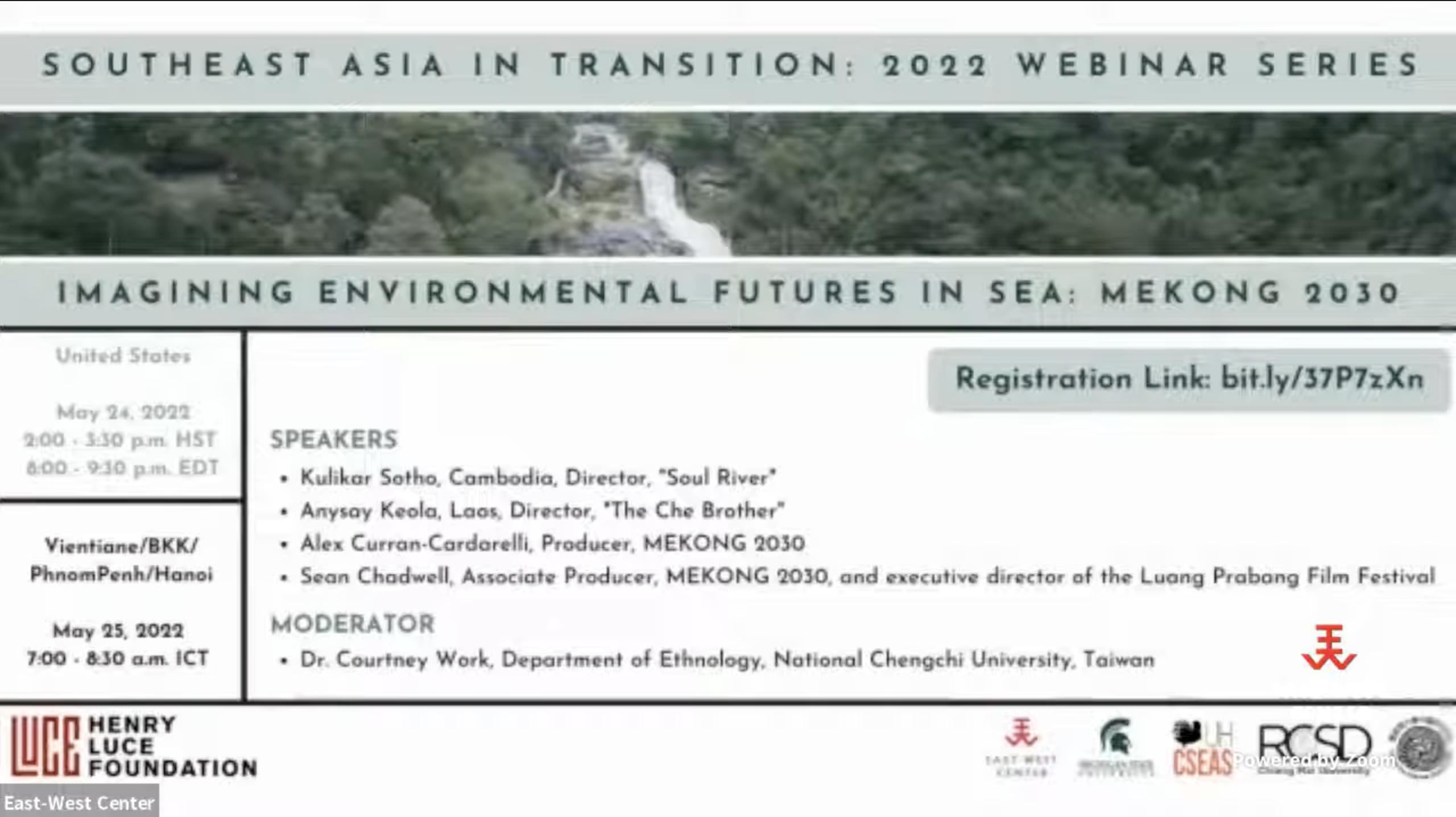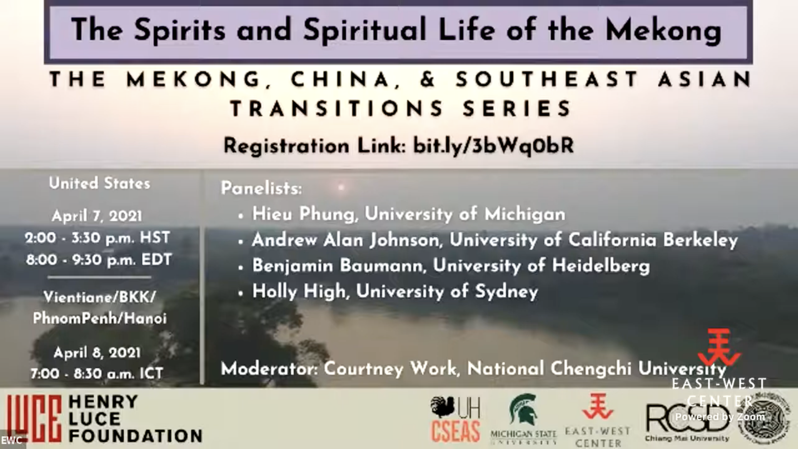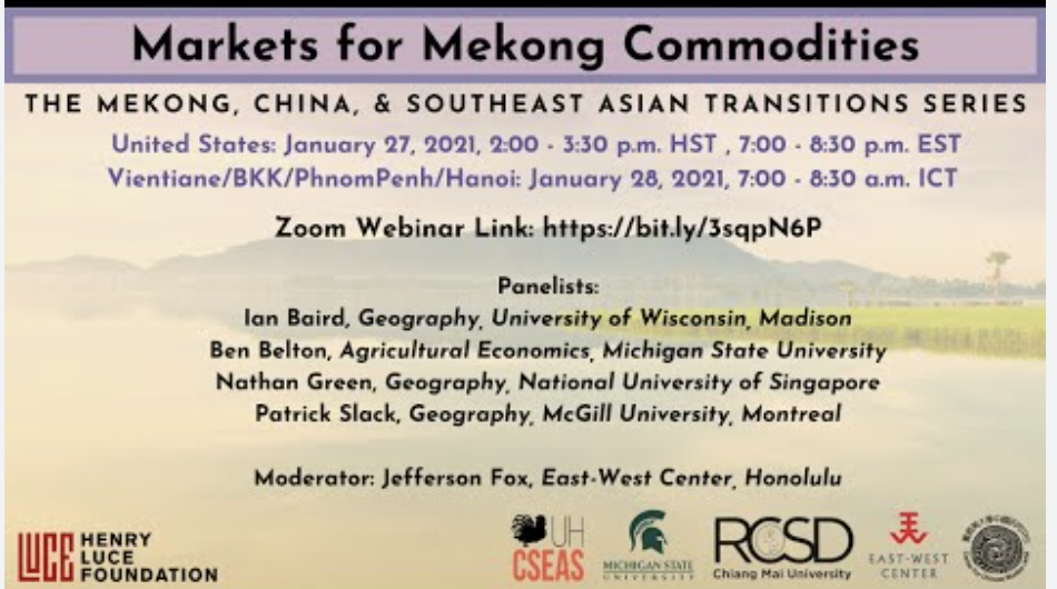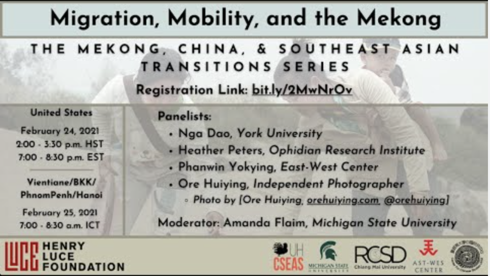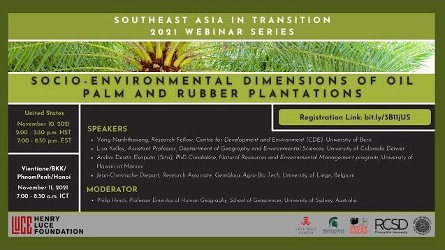 The LuceSEA Transitions series of webinars is co-organized by University of Hawai‘i Center for Southeast Asian Studies, University of Hawai‘i at Mānoa Center for Chinese Studies, East-West Center, Michigan State University James Madison College and Asian Studies Center, and Chiang Mai University Regional Center for Social Science and Sustainable Development.