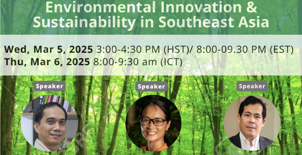 Panelists: Xiaoyun Neo (UHM); Areerat Worawongwasu (UHM); Abdurrahman Abdullah (Universitas Hasanuddin); Irfan Saputra (Universitas Hasanuddin); Aswin Baharuddin (Universiti Malaya)
